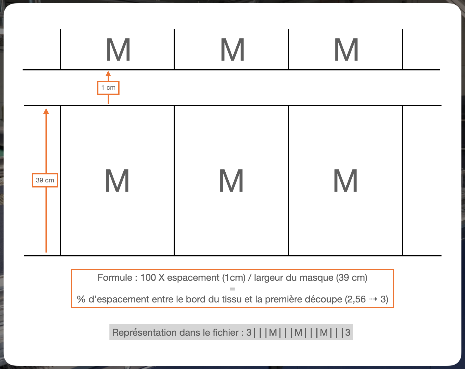 - Le “M” représente 1 rectangle et les “⎮⎮⎮” correspond au nombre de passage du laser