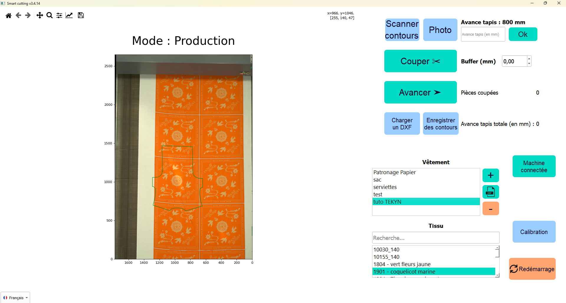 Elle peut se faire soit via la reconnaissance par la caméra soit via l'import d'un patronage dxf