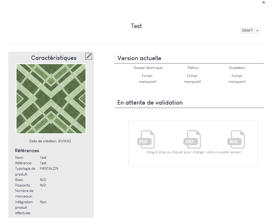 - Chargez la fiche technique de la matière (1) ainsi qu'un visuel (2).