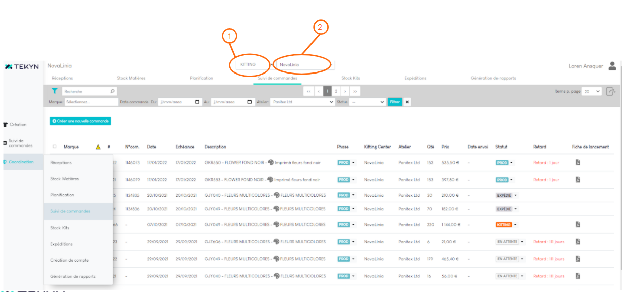 - Allez dans l'onglet “Coordination” et “Suivi de commandes”.