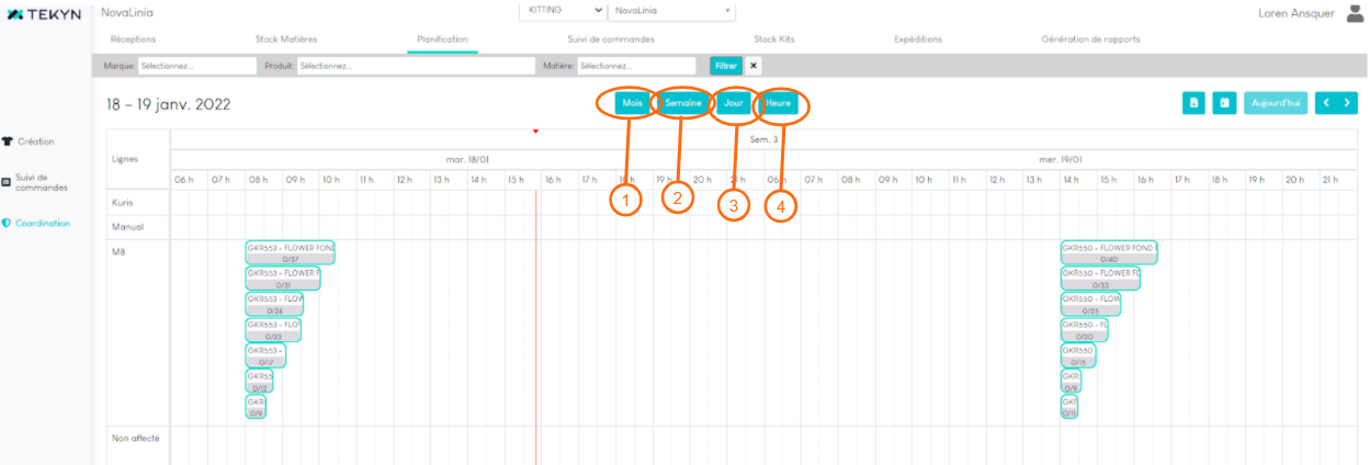 1. Allez dans l'onglet “Planification”. Vous pouvez choisir différentes vues (mois, semaines, jours, heures)