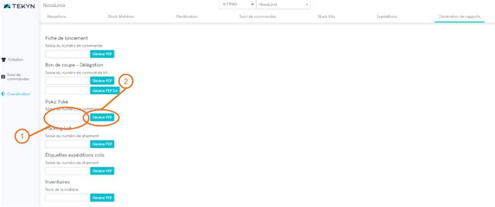 1. Toujours sur la page “Coordination”, cliquez sur l'onglet “Génération de rapport”. Vous trouverez le fichier “Poka Yoké”. Il indique les informations suivantes :