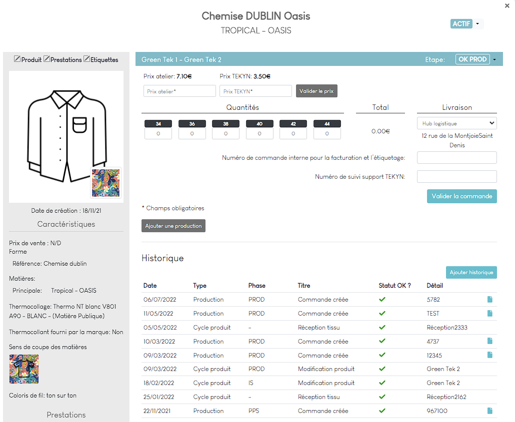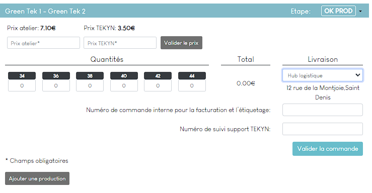 Ce formulaire créera une commande à valider dans votre espace KITTING qui créera ensuite des sous-commandes pour chaque taille dans l'application Lean Cutting.