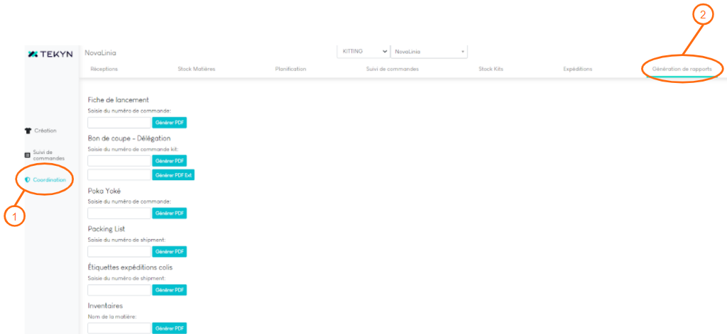 1. Allez dans l'onglet “Coordination” et “Suivi de commandes”.
